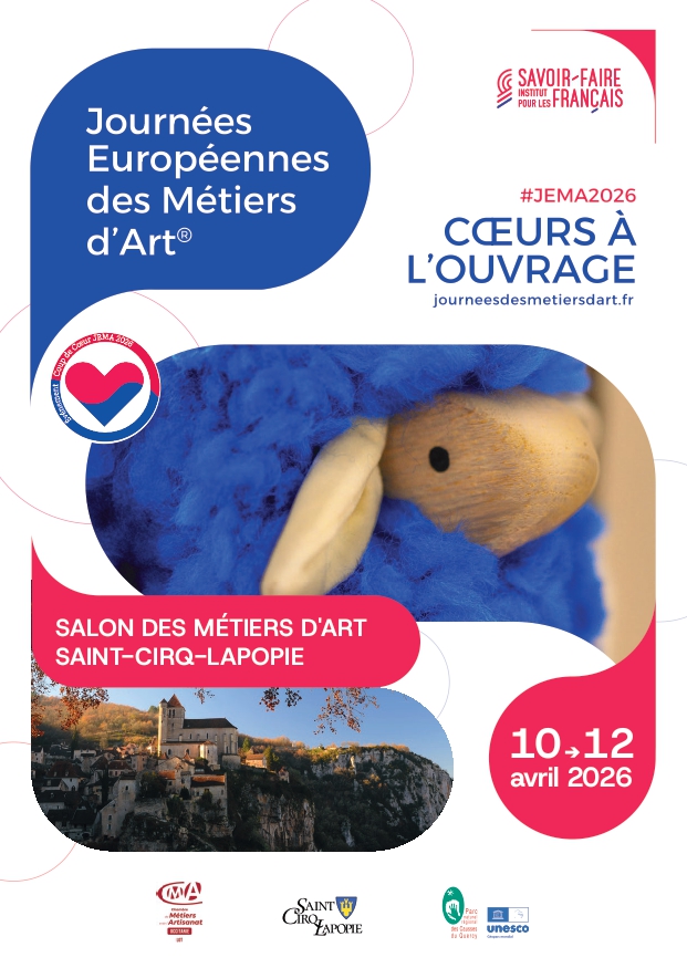 Les 10 – 11 et 12 avril 2026 à Saint Cirq Lapopie 46. Rencontre des métiers d’art organisée par la CMA du Lot.
