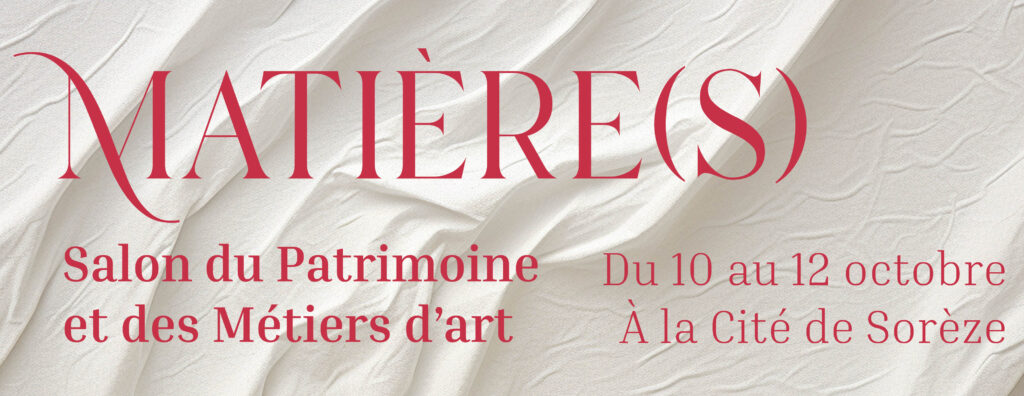 Du 10 au 12 octobre 2025 à la Cité de Sorèze 81 Pour sa première édition, le salon Matière(s) s’installe dans le cadre prestigieux de la Cité de Sorèze, en partenariat avec le musée Dom Robert